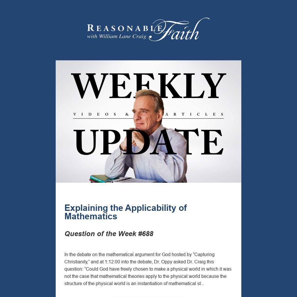 In the debate on the mathematical argument for God hosted by “Capturing Christianity,” and at 1:12:00 into the debate, Dr. Oppy asked Dr. Craig this question: “Could God have freely chosen to make a physical world in which it was not the case that mathematical theories apply to the physical world because the structure of the physical world is an instantiation of mathematical st...