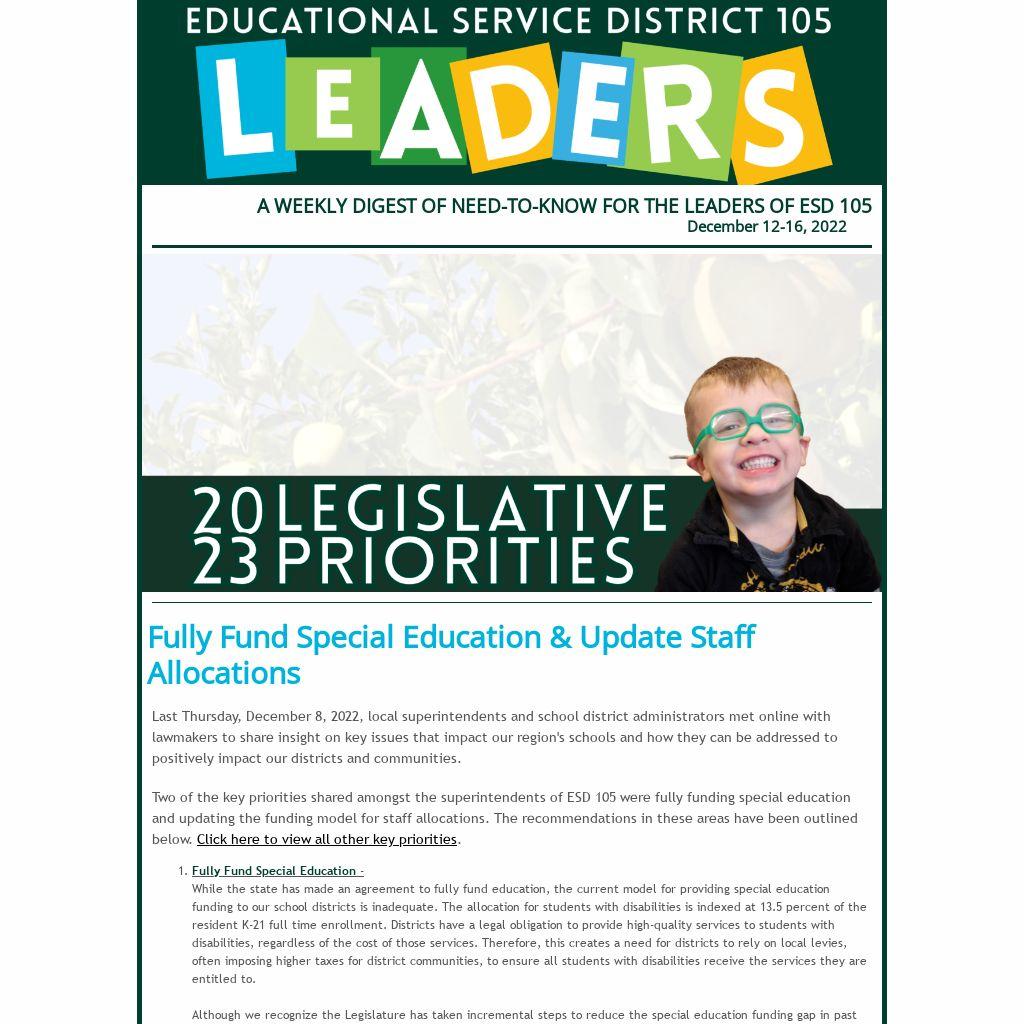 A WEEKLY DIGEST OF NEED-TO-KNOW FOR THE LEADERS OF ESD 105 |
