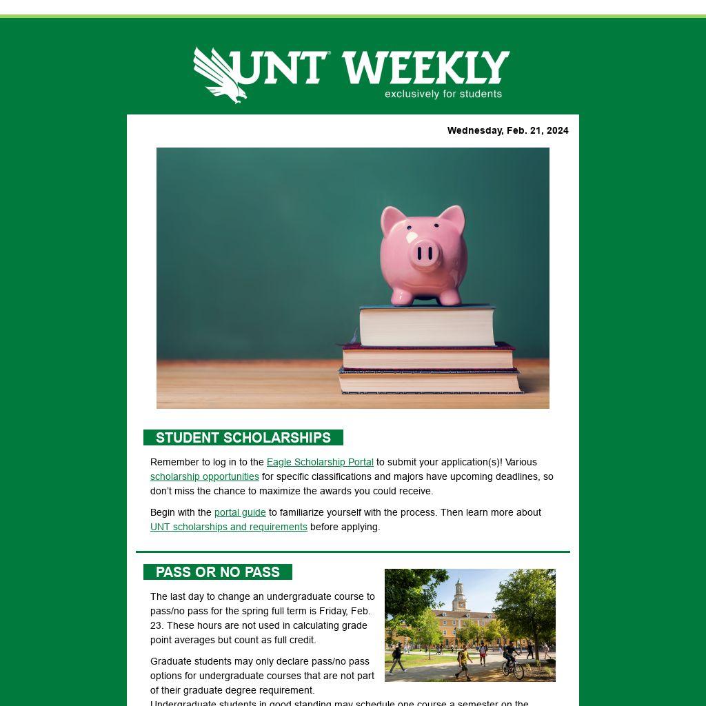 The last day to change an undergraduate course to pass/no pass for the spring full term is Friday, Feb. 23. These hours are not used in calculating grade point averages but count as full credit.