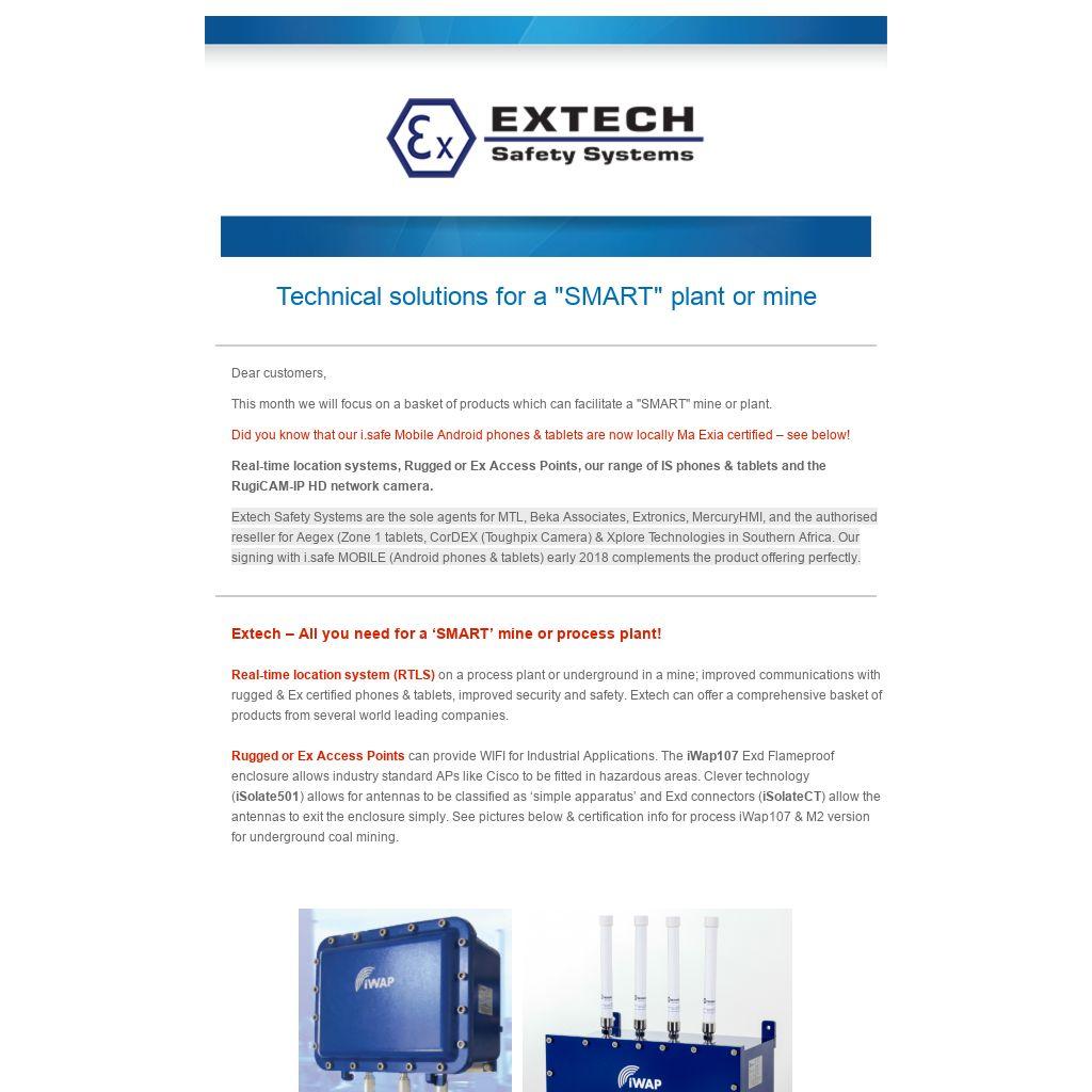 Extech Safety Systems are the sole agents for MTL, Beka Associates, Extronics, MercuryHMI, and the authorised reseller for Aegex (Zone 1 tablets, CorDEX (Toughpix Camera) & Xplore Technologies in Southern Africa. Our signing with i.safe MOBILE (Android phones & tablets) early 2018 complements the product offering perfectly.