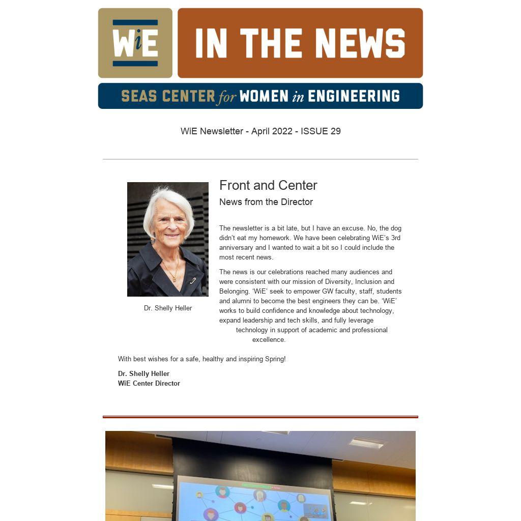 The news is our celebrations reached many audiences and were consistent with our mission of Diversity, Inclusion and Belonging. ‘WiE’ seek to empower GW faculty, staff, students and alumni to become the best engineers they can be. ‘WiE’ works to build confidence and knowledge about technology, expand leadership and tech skills, and fully leverage technology in support of academic and professional excellence.