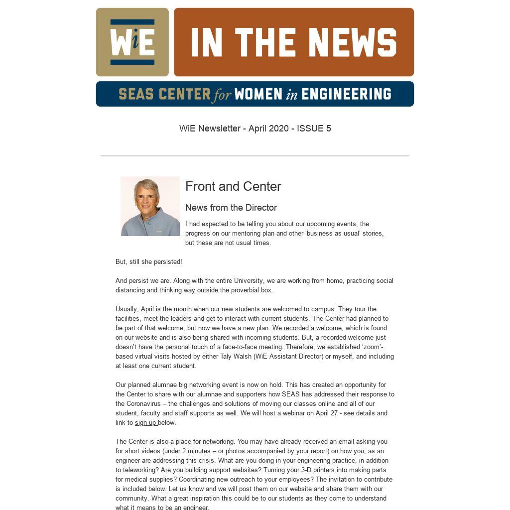 For most, the uncertainty delivered by the coronavirus crisis is taking up so much of our daily energy and attention. As students adjust to the new normal of remote learning, the Center for Women in Engineering is gathering relevant and informative content. If you are a practicing engineer, feel free to contribute at least one impact of the COVID-19 issue, relating to your engineering reality at work. A few examples: