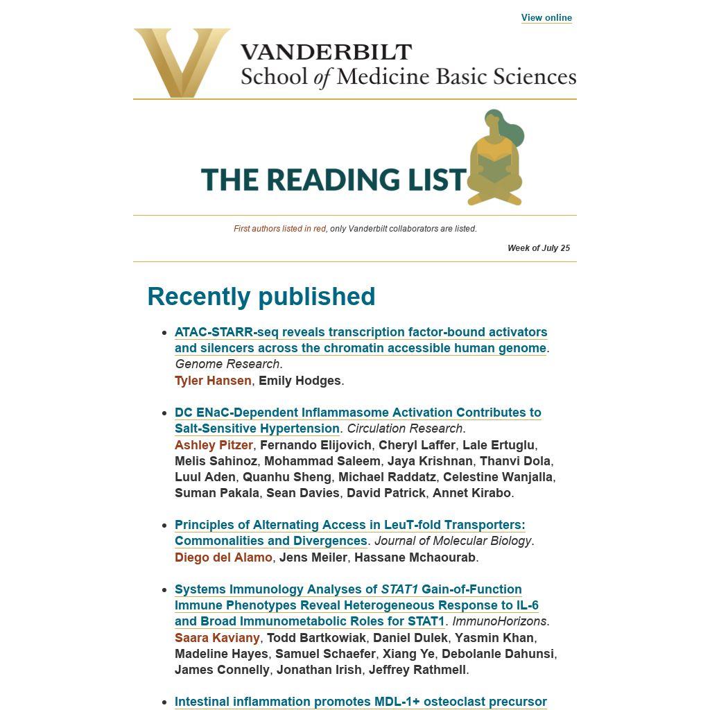 First authors listed in red, only Vanderbilt collaborators are listed.