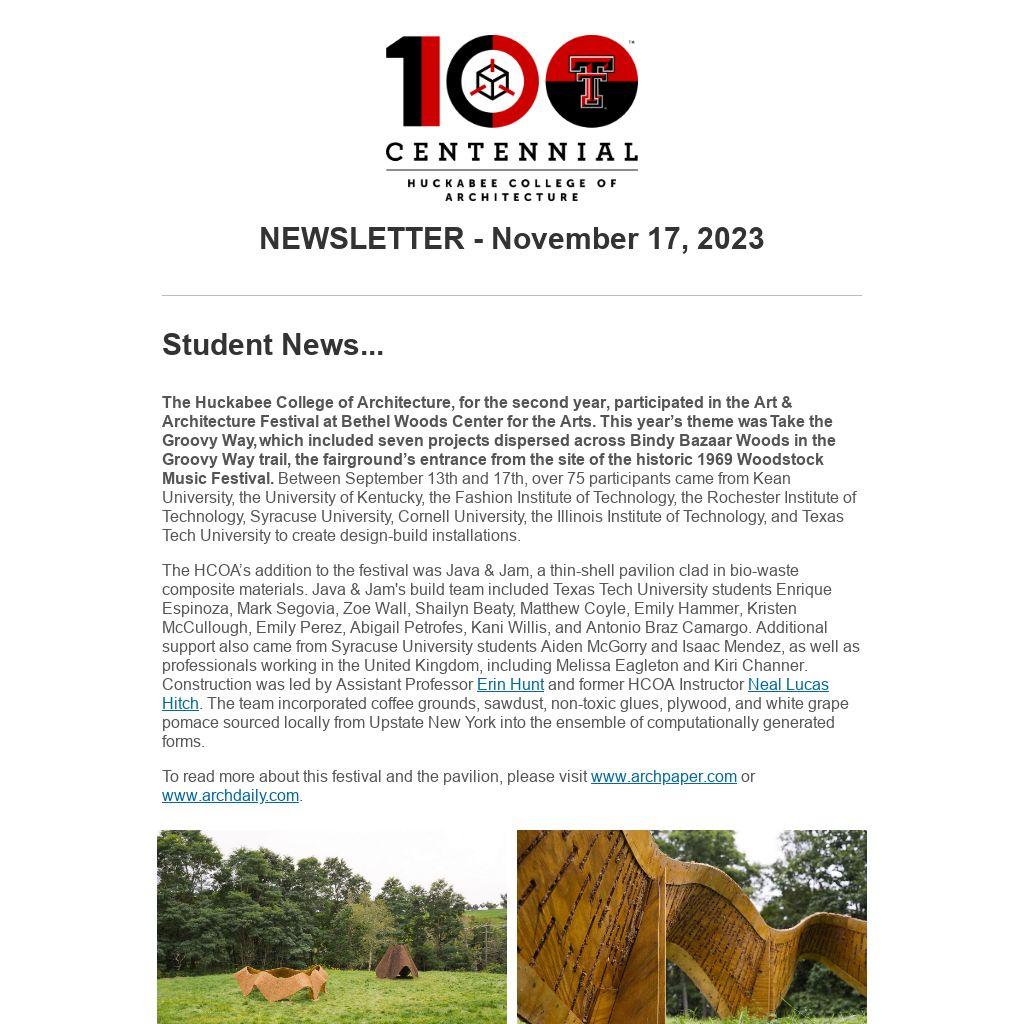 If you're not already, follow us on Instagram, Twitter, LinkedIn, and Facebook for the latest updates from the HCOA and be sure to like and share our content within your own networks! Do you have news or updates to share? Email architecture@ttu.edu for a possible feature in the next newsletter!