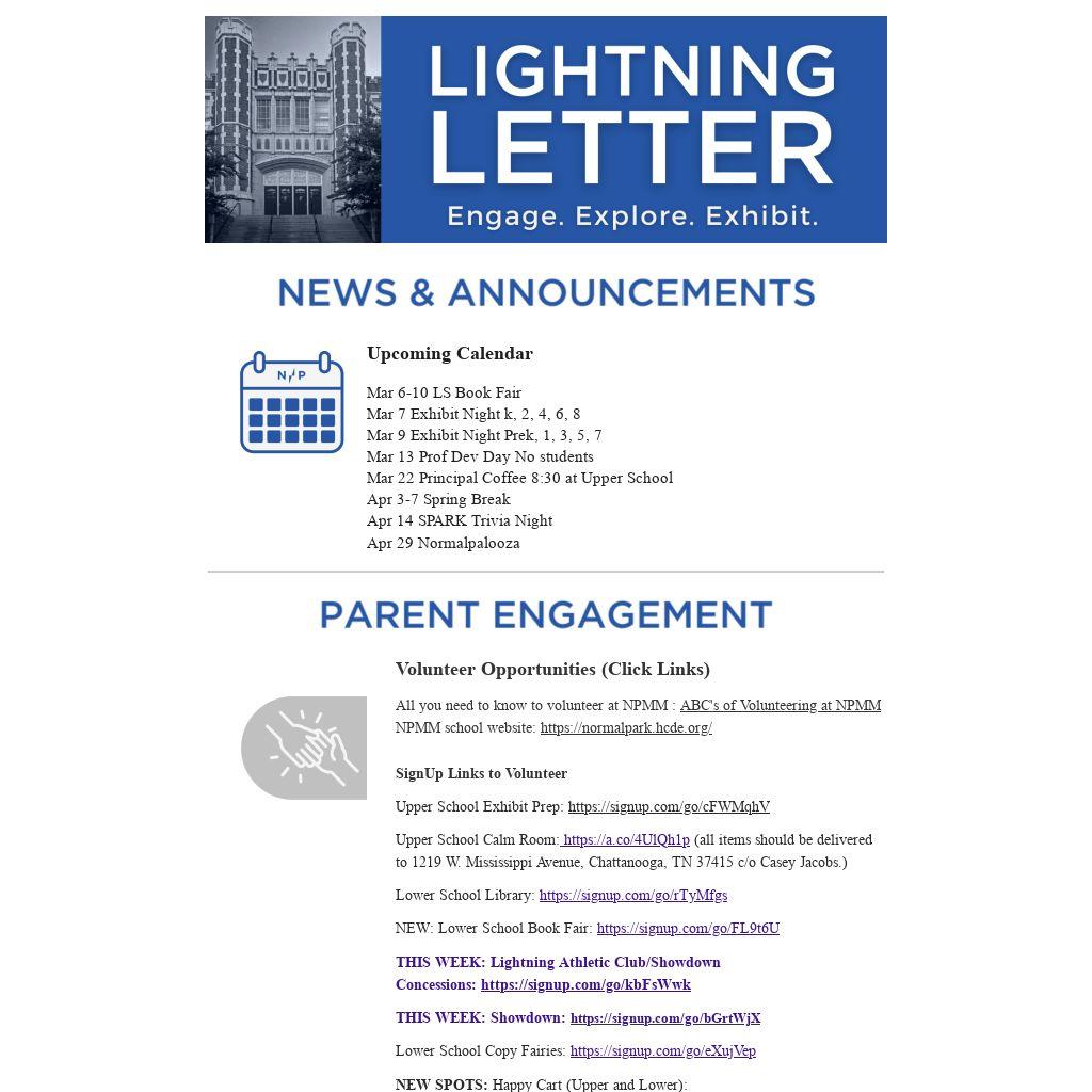 Mrs. Blackburn would like to remind all 3rd grade parents about the sign-ups for Normal Park Singers for 3rd graders that will be starting next Thursday morning (Feb 23) at 7:45 am in the morning. Permission slips were sent home this week and need to be turned in by Tuesday, February 21. Any questions can be emailed to me at blackburn_k@hcde.org