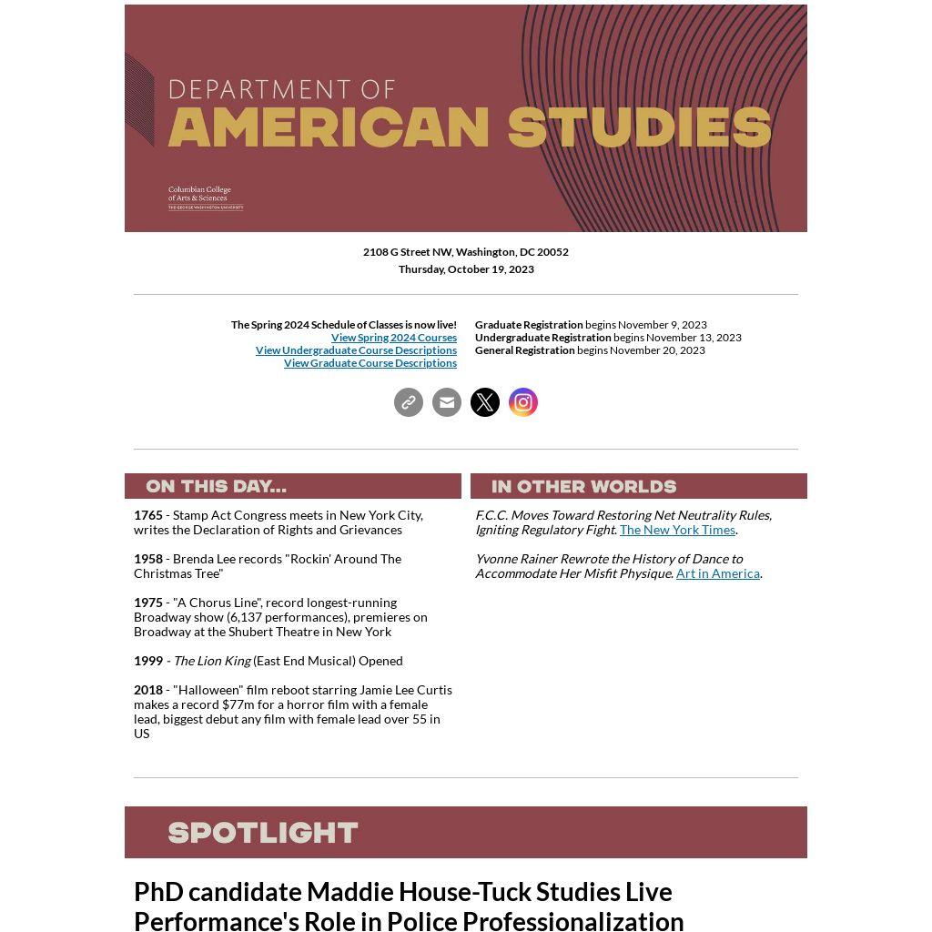 Like what you see? Have spotlights, kudos, events, or opportunities that you would like to share? We want to hear from you! Navigate to our feedback form using the link below, or more simply, forward your tip to amst@gwu.edu.