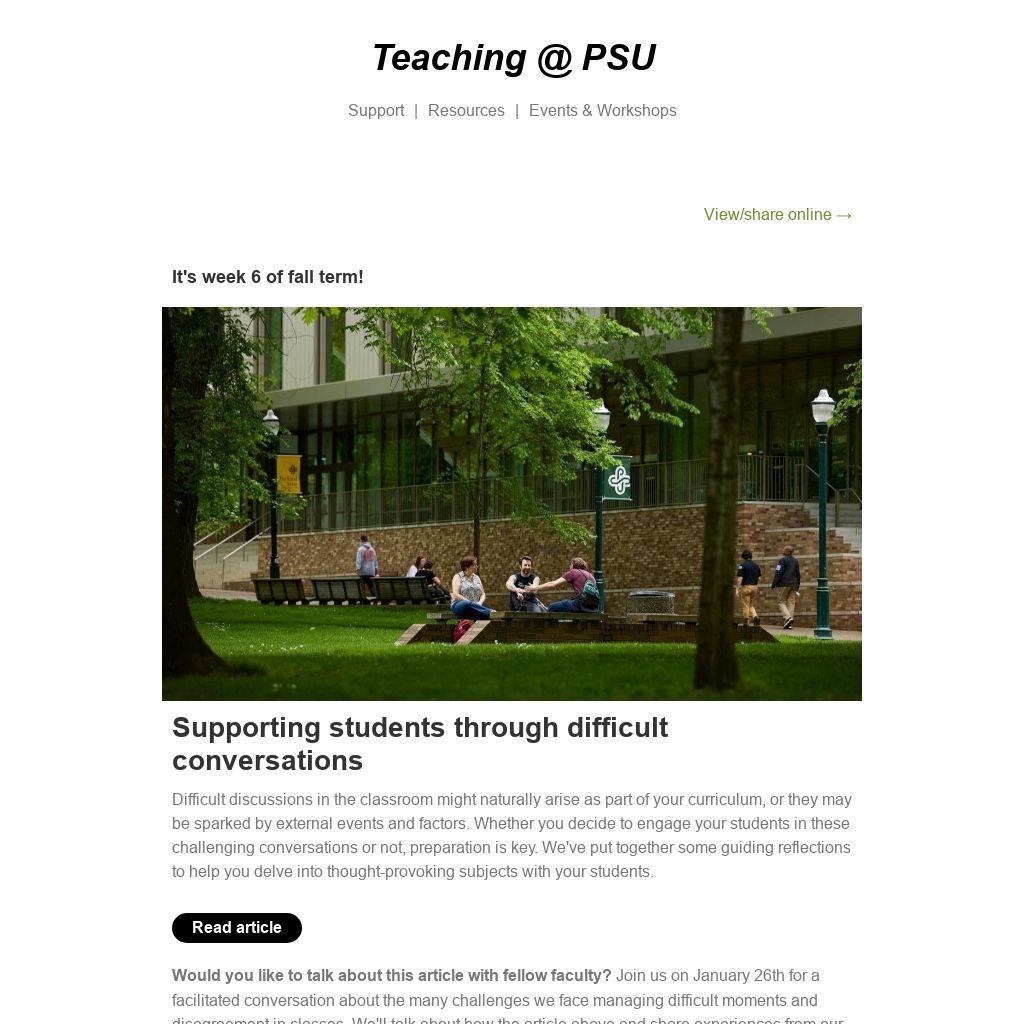 Would you like to talk about this article with fellow faculty? Join us on January 26th for a facilitated conversation about the many challenges we face managing difficult moments and disagreement in classes. We'll talk about how the article above and share experiences from our teaching.