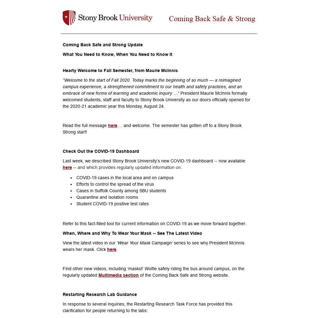 Read the full message here ... and welcome. The semester has gotten off to a Stony Brook Strong start!