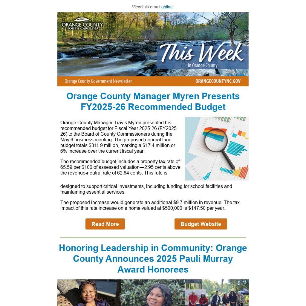 Orange County Manager Myren Presents FY2025-26 Recommended Budget |
