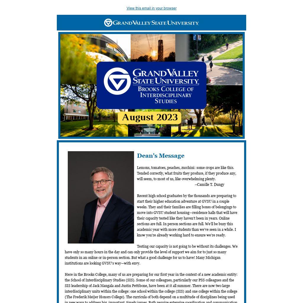 As the School of Interdisciplinary Studies (SIS) has officially launched, we encourage you to explore the new website at www.gvsu.edu/sis, where you’ll find info about the School, an organizational chart, faculty/staff directory, and other resources.