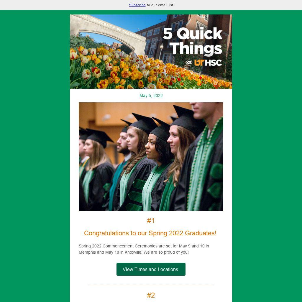 Spring 2022 Commencement Ceremonies are set for May 9 and 10 in Memphis and May 18 in Knoxville. We are so proud of you!