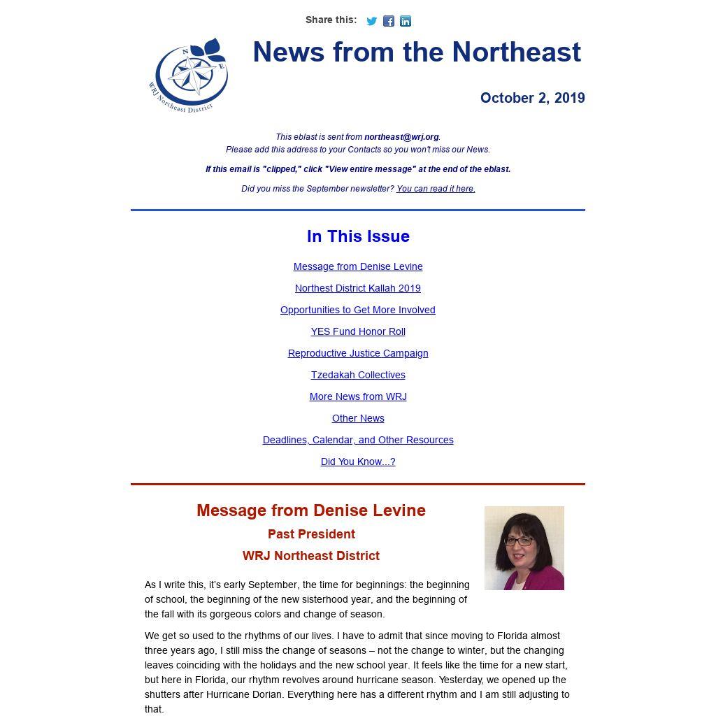 This eblast is sent from northeast@wrj.org.