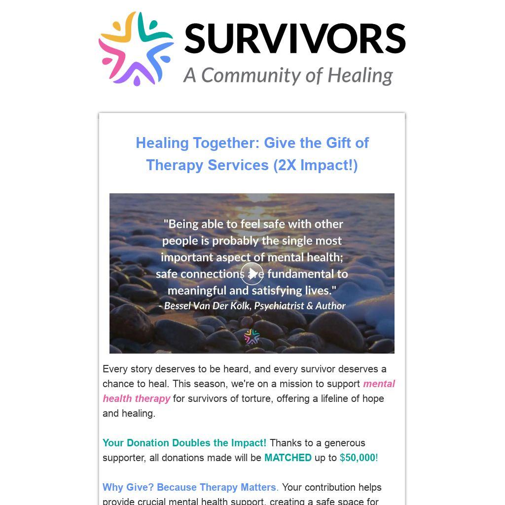 Every story deserves to be heard, and every survivor deserves a chance to heal. This season, we're on a mission to support mental health therapy for survivors of torture, offering a lifeline of hope and healing.
