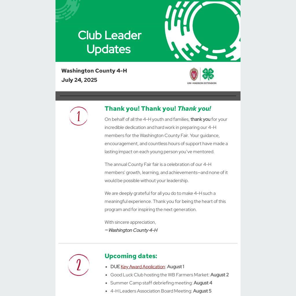 On behalf of all the 4-H youth and families, thank you for your incredible dedication and hard work in preparing our 4-H members for the Washington County Fair. Your guidance, encouragement, and countless hours of support have made a lasting impact on each young person you’ve mentored.