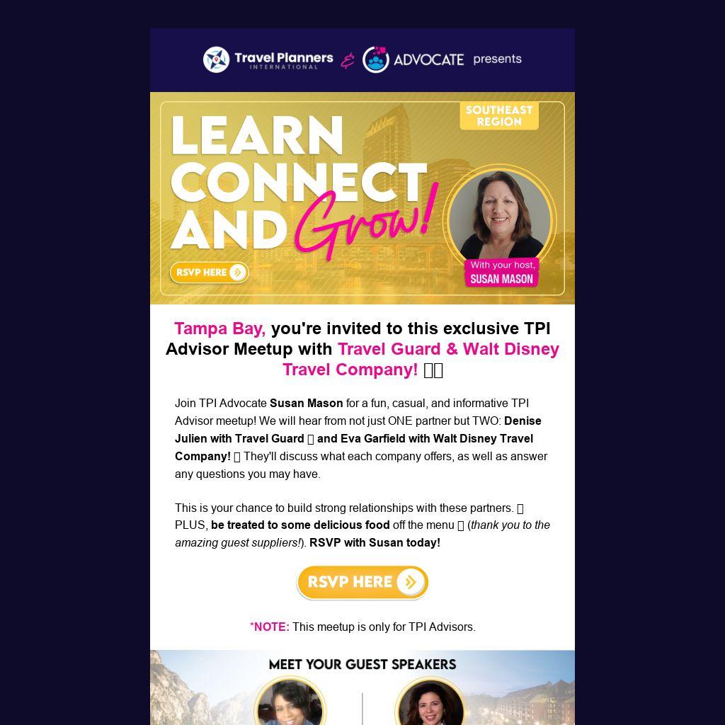 Tampa Bay, you're invited to this exclusive TPI Advisor Meetup with Travel Guard & Walt Disney Travel Company! π‘οΈπͺ