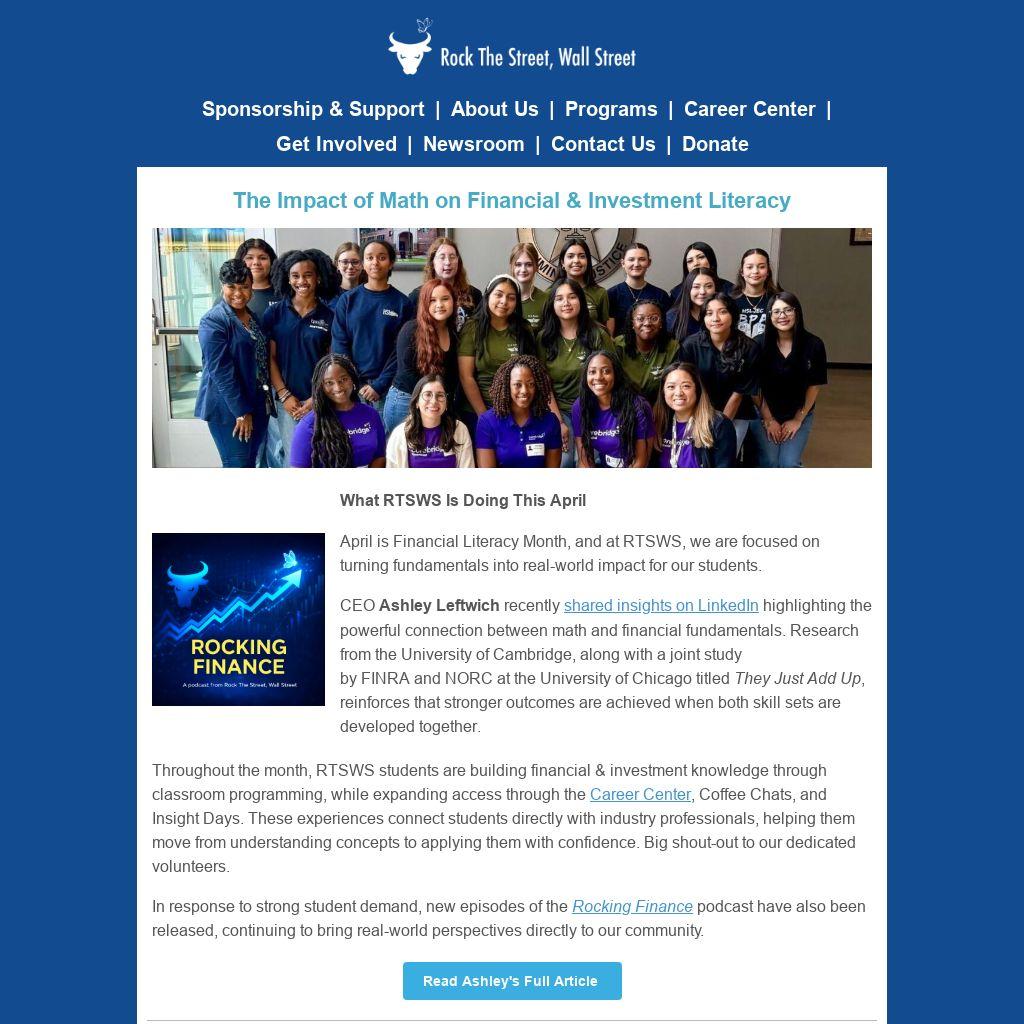 Throughout the month, RTSWS students are building financial & investment knowledge through classroom programming, while expanding access through the Career Center, Coffee Chats, and Insight Days. These experiences connect students directly with industry professionals, helping them move from understanding concepts to applying them with confidence. Big shout-out to our dedicated volunteers.