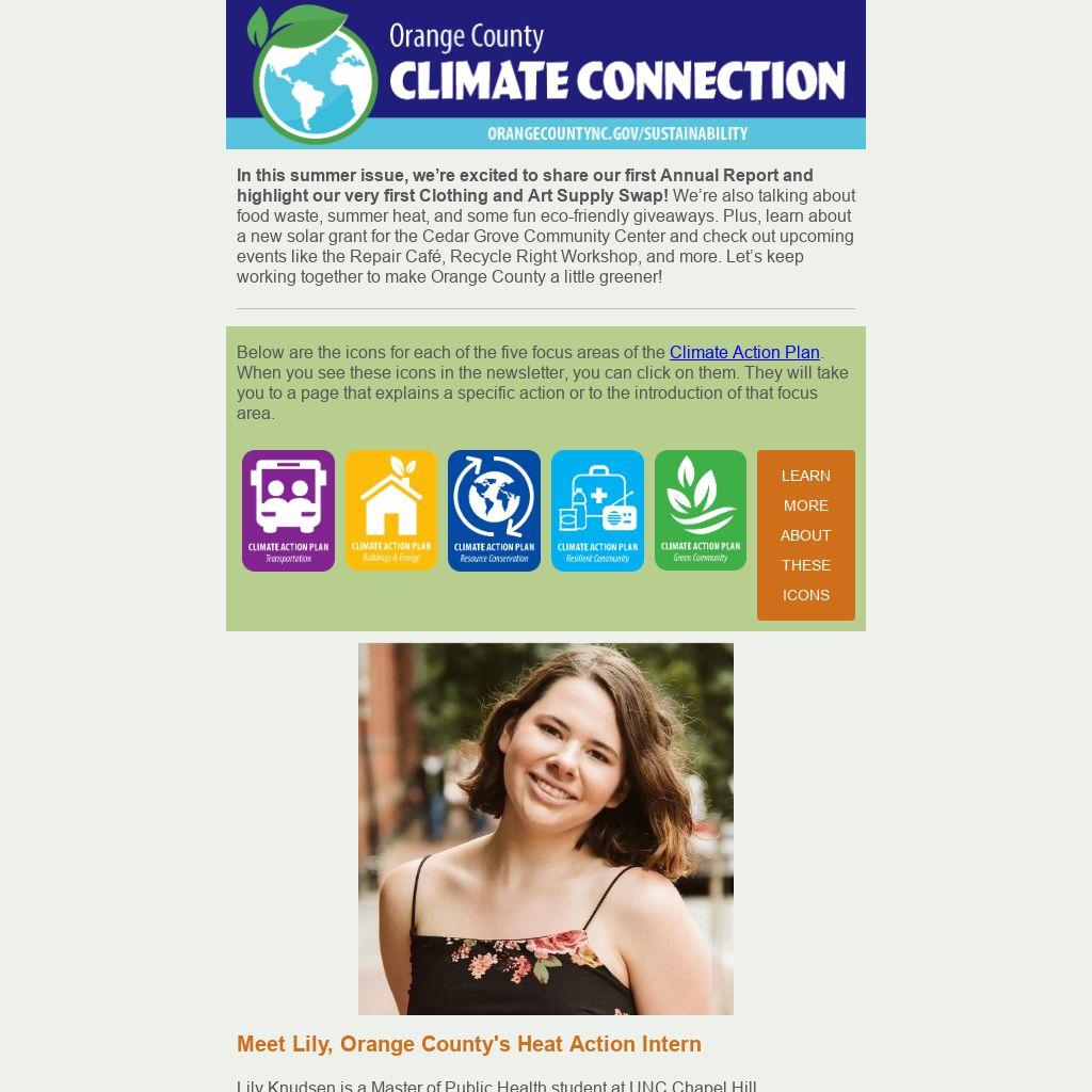 In this summer issue, we’re excited to share our first Annual Report and highlight our very first Clothing and Art Supply Swap! We’re also talking about food waste, summer heat, and some fun eco-friendly giveaways. Plus, learn about a new solar grant for the Cedar Grove Community Center and check out upcoming events like the Repair Café, Recycle Right Workshop, and more. Let’s keep working together to make Orange County a little greener!