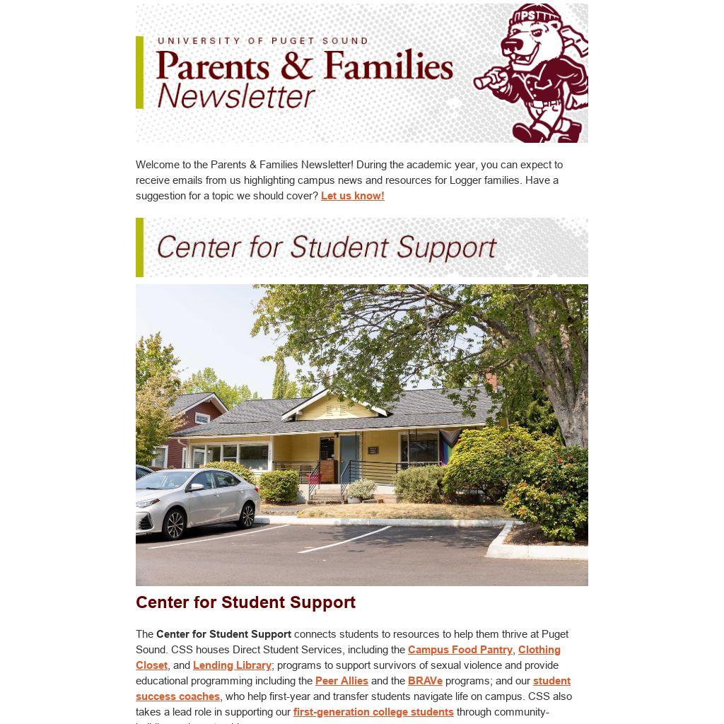 Welcome to the Parents & Families Newsletter! During the academic year, you can expect to receive emails from us highlighting campus news and resources for Logger families. Have a suggestion for a topic we should cover? Let us know!