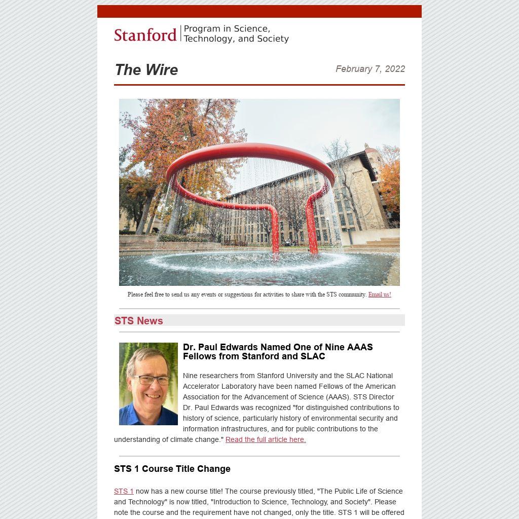 Nine researchers from Stanford University and the SLAC National Accelerator Laboratory have been named Fellows of the American Association for the Advancement of Science (AAAS). STS Director Dr. Paul Edwards was recognized "for distinguished contributions to history of science, particularly history of environmental security and information infrastructures, and for public contributions to the understanding of climate change." Read the full article here.