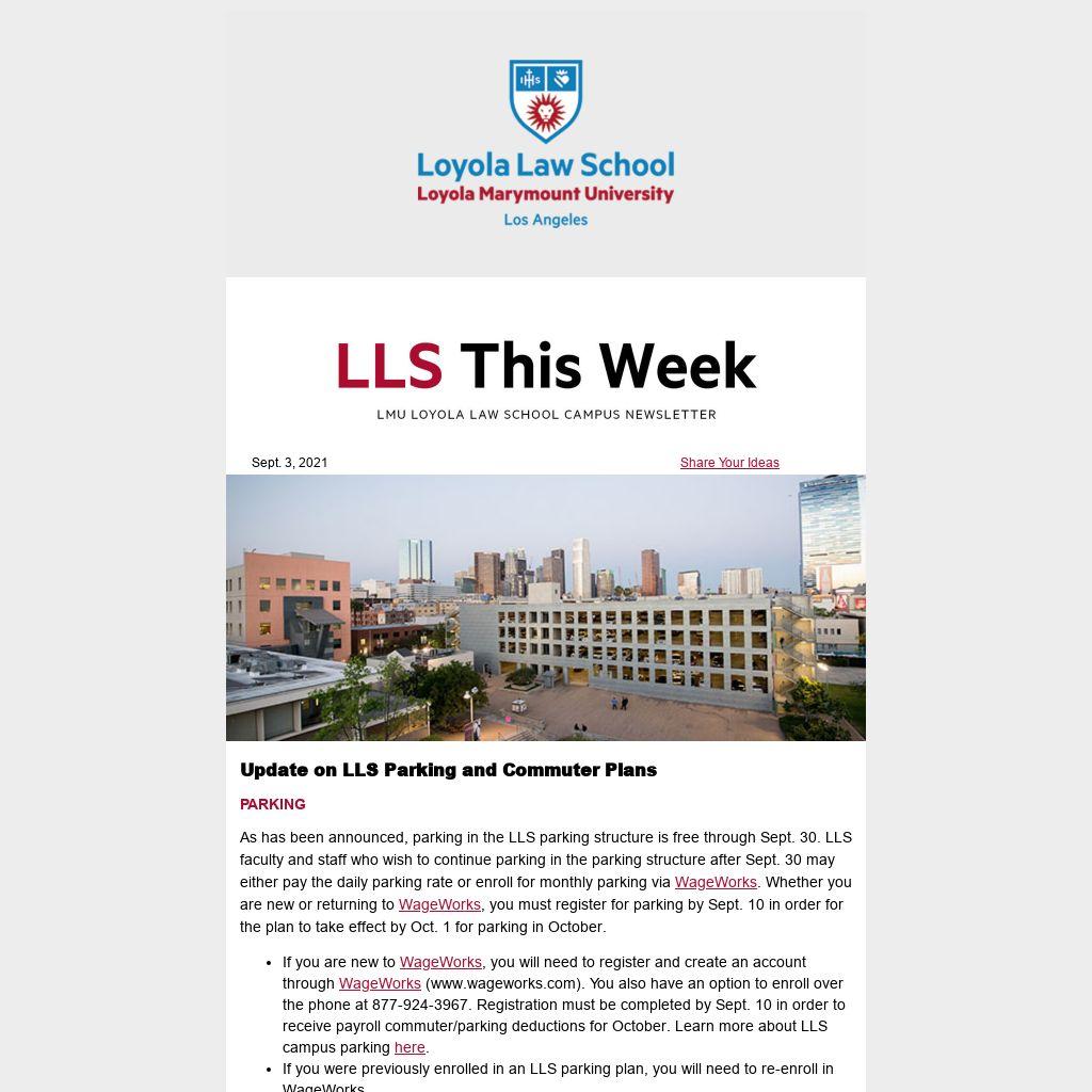 As has been announced, parking in the LLS parking structure is free through Sept. 30. LLS faculty and staff who wish to continue parking in the parking structure after Sept. 30 may either pay the daily parking rate or enroll for monthly parking via WageWorks. Whether you are new or returning to WageWorks, you must register for parking by Sept. 10 in order for the plan to take effect by Oct. 1 for parking in October.