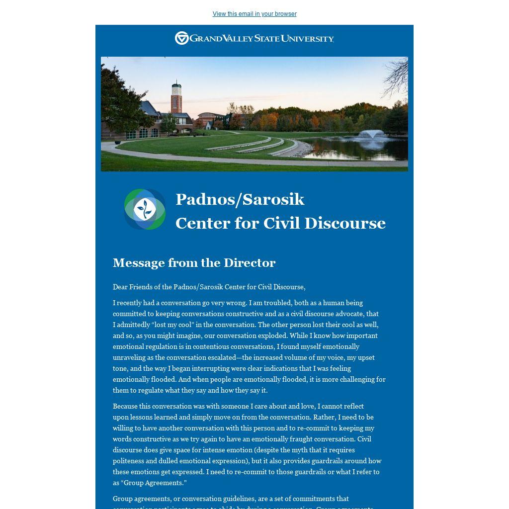 Dear Friends of the Padnos/Sarosik Center for Civil Discourse,