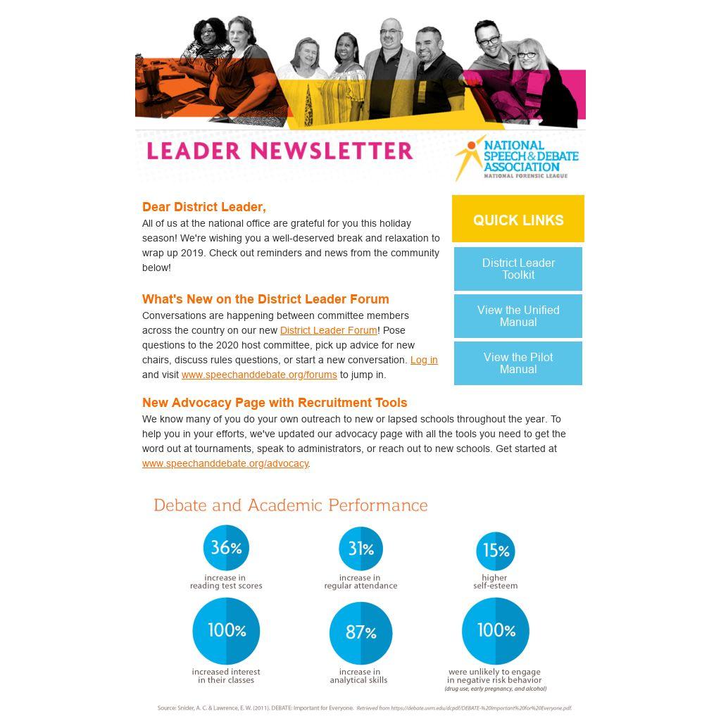 District New Coach of the Year Award » This award recognizes an exemplary new high school coach who is in their first year of NSDA membership. If you're not sure when a coach membership was paid, please reach out to us!