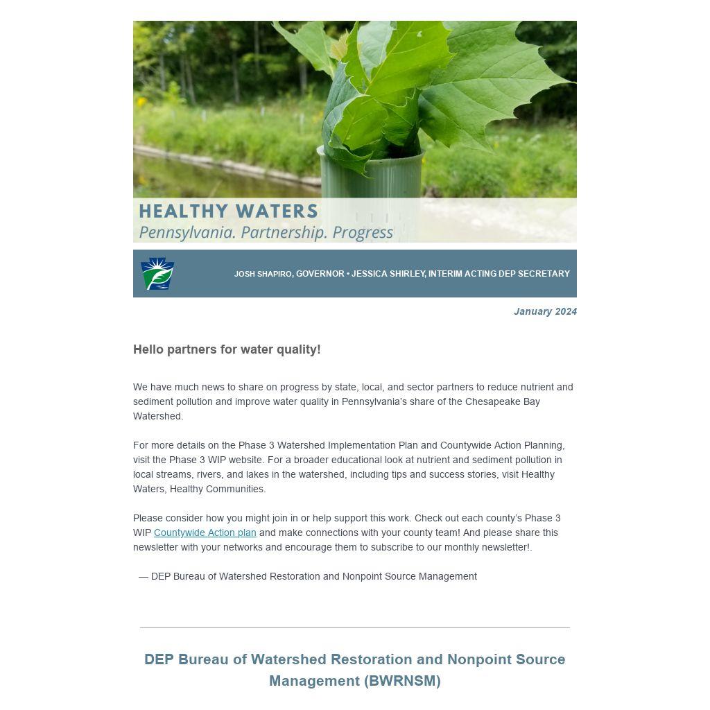On January 3, the Chesapeake Bay Watershed Restoration Division (CBWRD) hosted the 2024 Clean Water Progress Team Strategies for Success webinar, as a follow up to the October 11, 2023, Clean Water Gathering of state program and Countywide Action Planning (CAP) action leaders.
