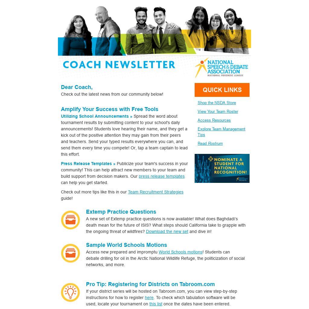 Utilizing School Announcements » Spread the word about tournament results by submitting content to your school's daily announcements! Students love hearing their name, and they get a kick out of the positive attention they may gain from their peers and teachers. Send your typed results everywhere you can, and send them every time you compete! Or, tap a team captain to lead this effort.