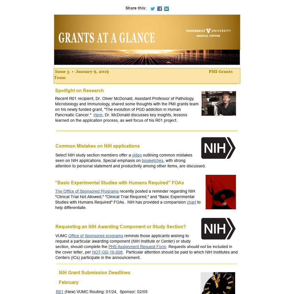 March R01 (Renewal, Resubmission, Revision) VUMC Routing: 02/21, Sponsor: 03/05 K Series (Renewal, Resubmission, Revision) VUMC Routing: 02/28, Sponsor: 03/12 R21 (Renewal, Resubmission, Revision) VUMC Routing: 03/06 , Sponsor 03/16