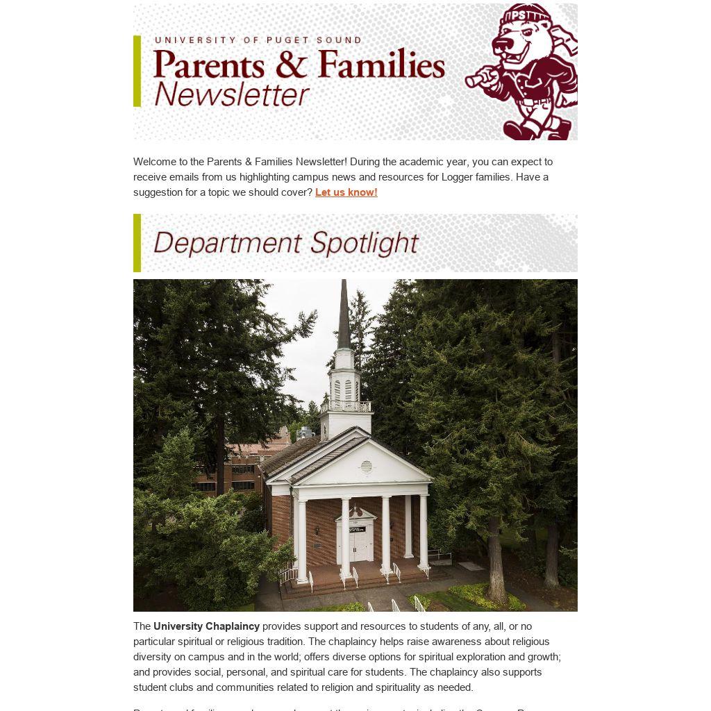 Welcome to the Parents & Families Newsletter! During the academic year, you can expect to receive emails from us highlighting campus news and resources for Logger families. Have a suggestion for a topic we should cover? Let us know!