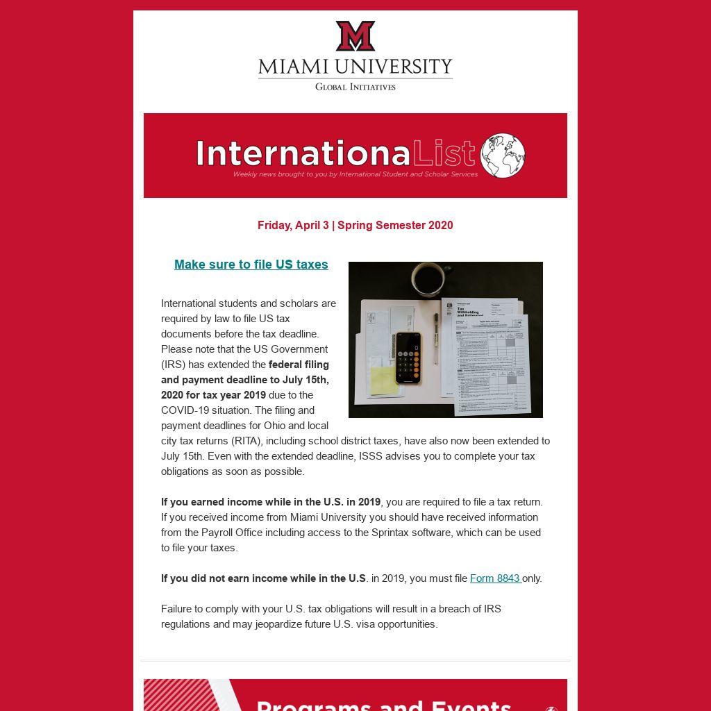 If your plans change, please resubmit the ISSS form for your Spring 2020 learning location.