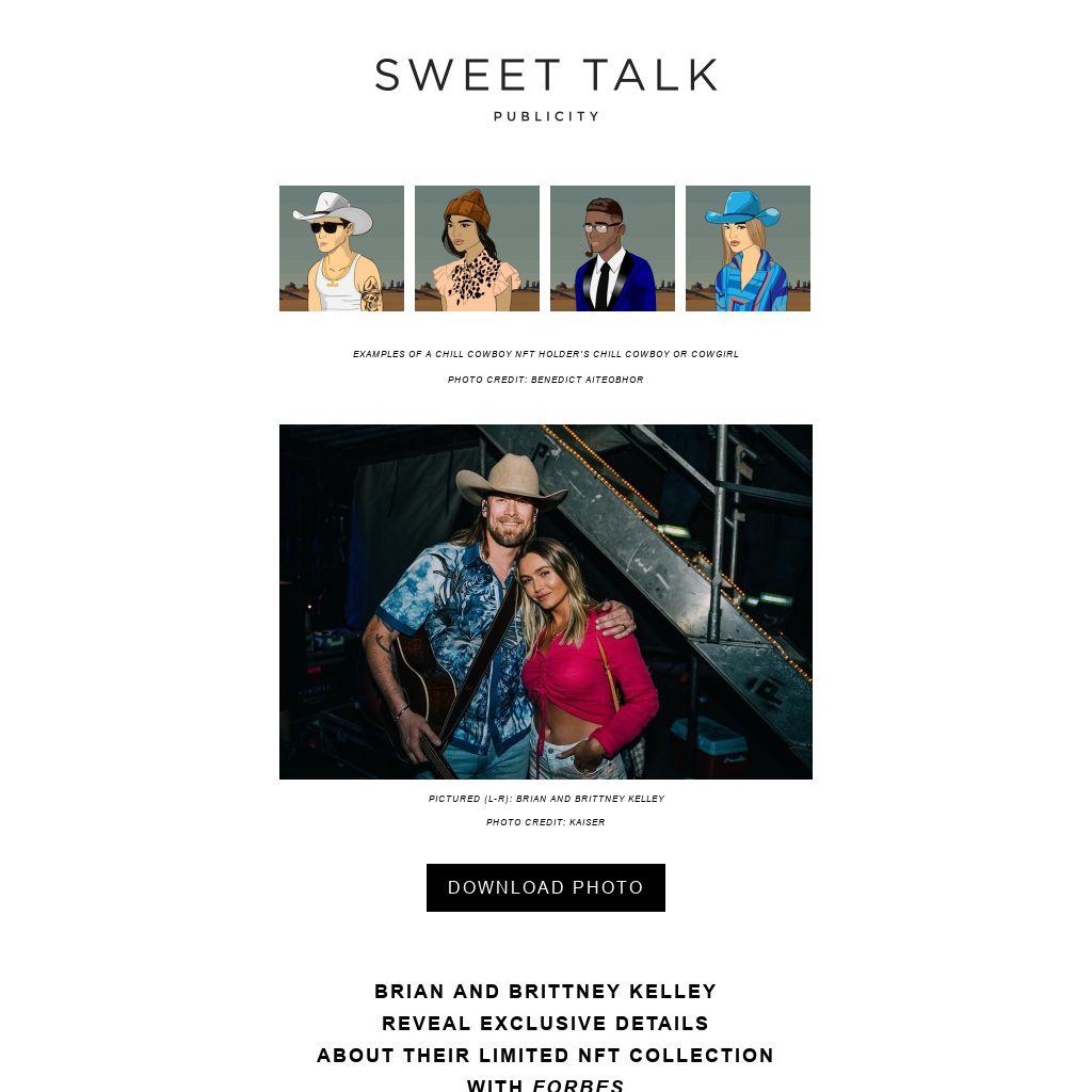 NASHVILLE, TENN. (April 28, 2022) — Bold visionaries and entrepreneurs Brian and Brittney Kelley are today (4/28) announcing anticipated details about their limited NFT collection, Chill Cowboy Country Club (CCCC), exclusively with Forbes. Uniquely blending futuristic metaverse innovation with one-of-a-kind IRL (in real life) experiences to create a NFT that is truly groundbreaking, the mint date is slated for June with more details coming soon.