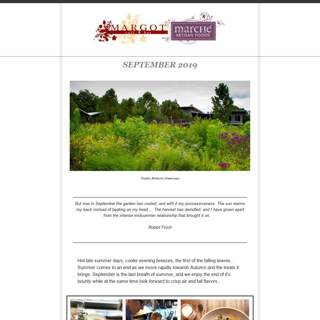 Look for some of these wonderful fruits and vegetables on Margot and Marche menus. We aspire to search out the best local products and flavors each season.. Specific crops and harvest dates of fall produce will depend, of course, on our farmer's availablity and our region's climate...