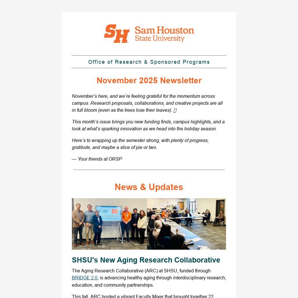 ARC continues to bridge science, health, and society at SHSU by building collaborations that shape the future of aging research.