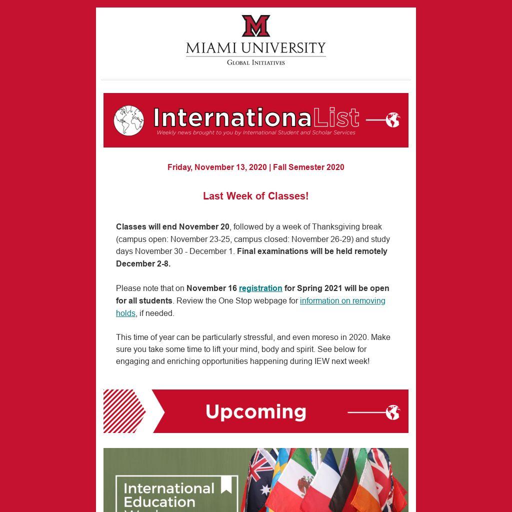 - Most Miami international students have been invited via email to participate in the International Student Barometer (ISB), a professionally assessed survey of your experience at Miami. You will continue to receive emails regarding this survey in the coming weeks. ISSS encourages you to take the time to share your experience and complete the ISB.