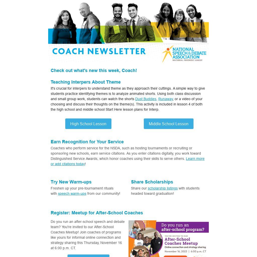 Do you run an after-school speech and debate team? You're invited to our After-School Coaches Meetup! Join coaches of programs like yours for informal online connection and strategy sharing this Thursday, November 16 at 6:00 p.m. CT.
