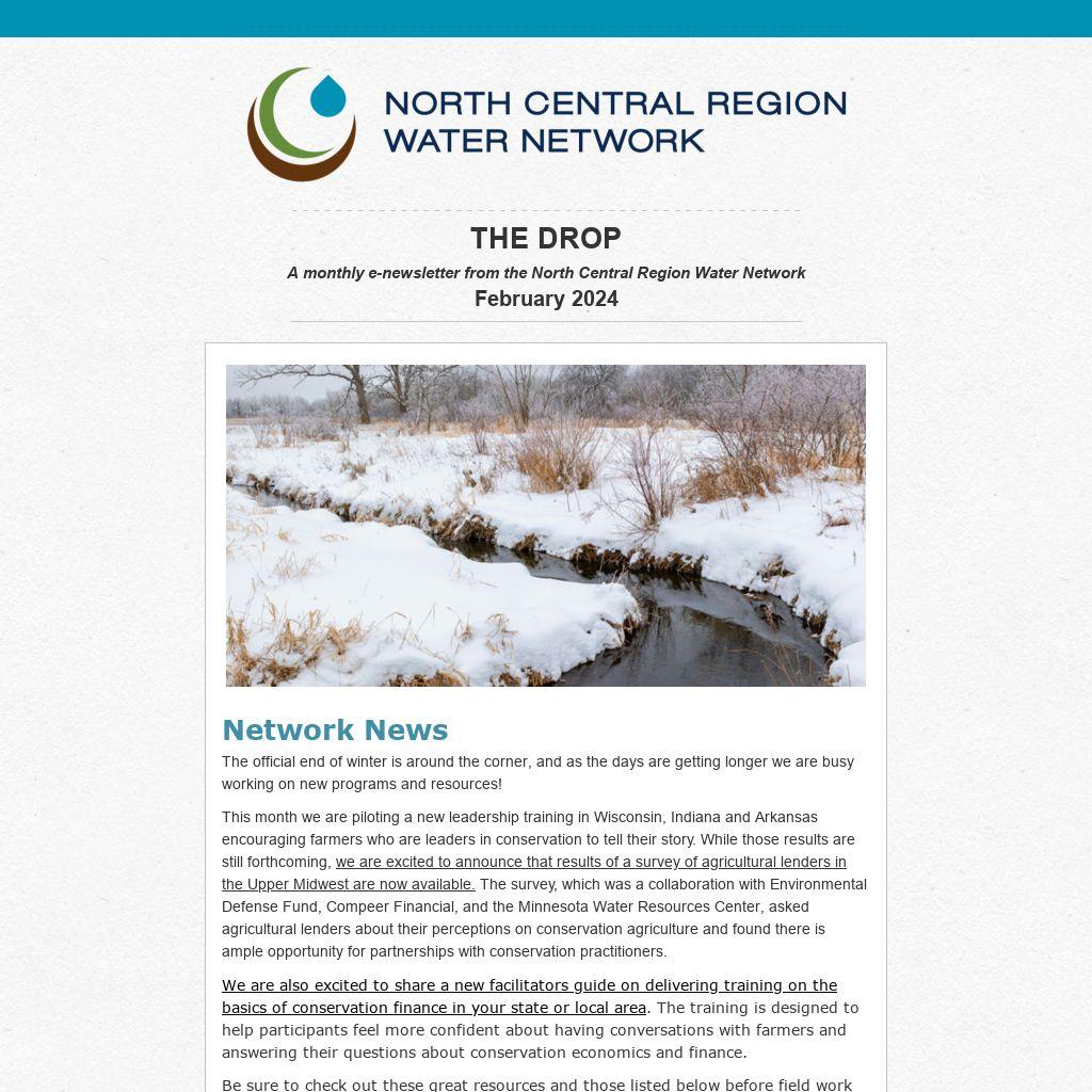 A monthly e-newsletter from the North Central Region Water Network February 2024