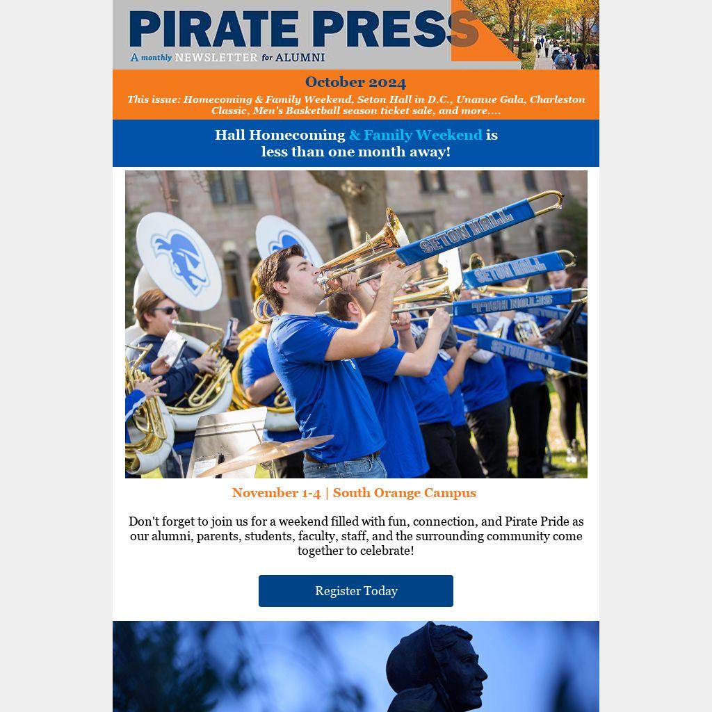 Don't forget to join us for a weekend filled with fun, connection, and Pirate Pride as our alumni, parents, students, faculty, staff, and the surrounding community come together to celebrate!