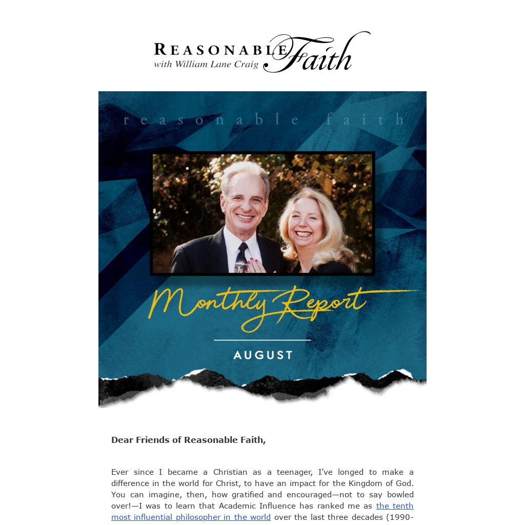 Ever since I became a Christian as a teenager, I’ve longed to make a difference in the world for Christ, to have an impact for the Kingdom of God. You can imagine, then, how gratified and encouraged—not to say bowled over!—I was to learn that Academic Influence has ranked me as the tenth most influential philosopher in the world over the last three decades (1990-2020)! What is especially significant is that these rankings are not just someone’s subjective opinion but are computed according to an algorithm that takes into account such objective data as number of citations of one’s work. According to Forbes magazine,....