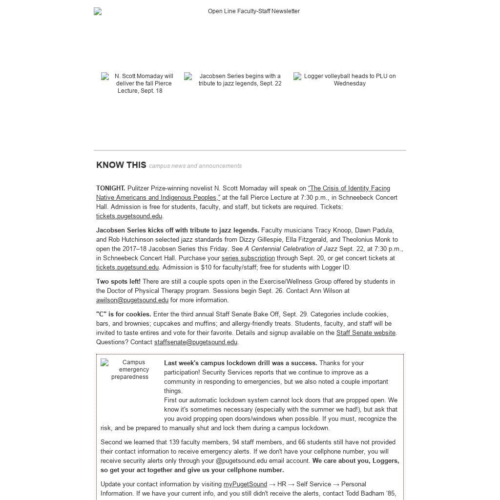 Second we learned that 139 faculty members, 94 staff members, and 66 students still have not provided their contact information to receive emergency alerts. If we don't have your cellphone number, you will receive security alerts only through your @pugetsound.edu email account. We care about you, Loggers, so get your act together and give us your cellphone number.