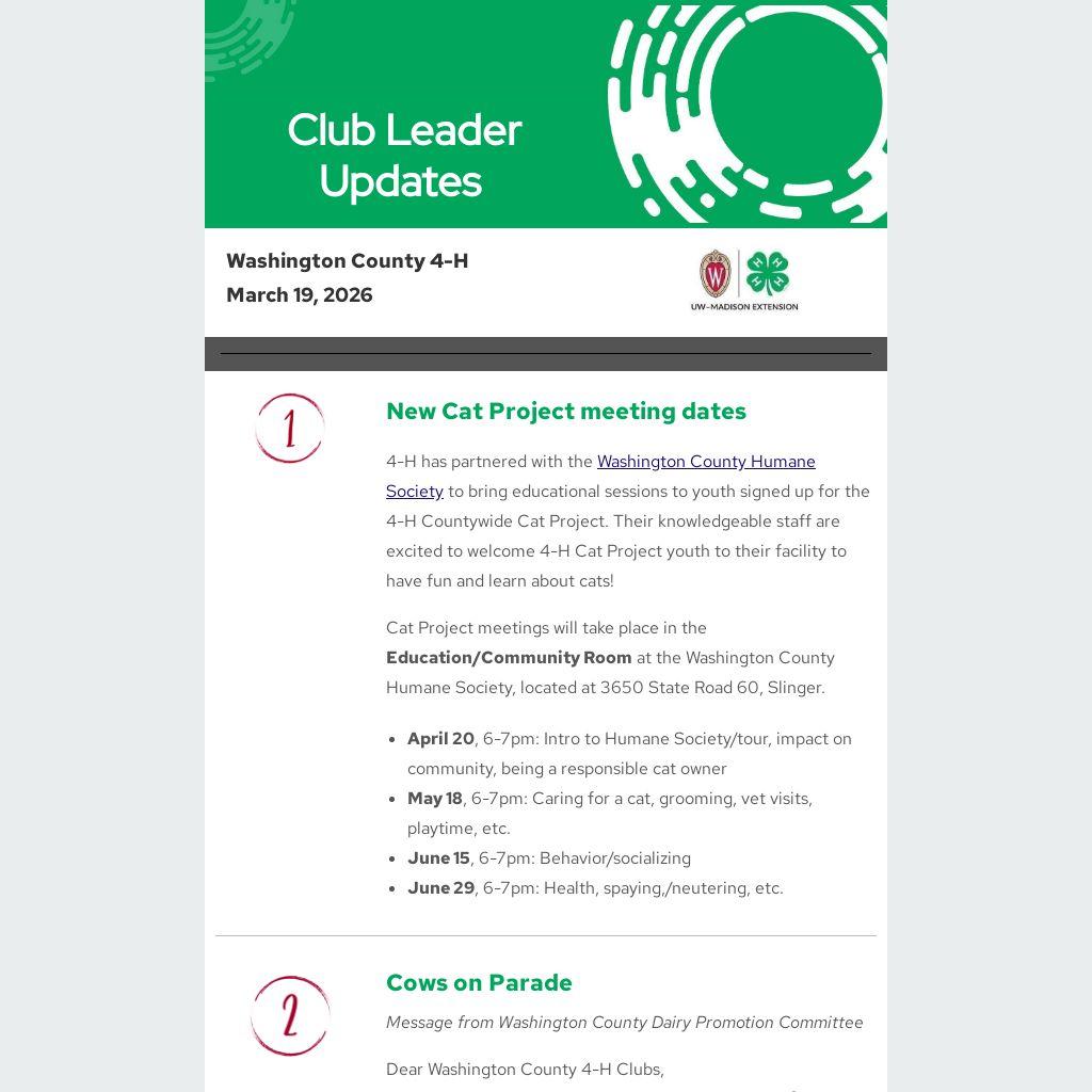Dear Washington County 4-H Clubs,