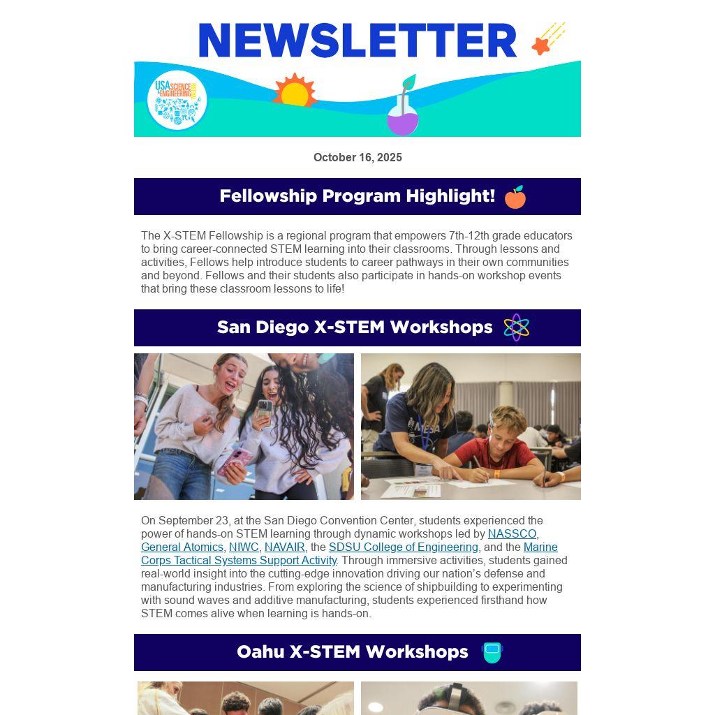 The X-STEM Fellowship is a regional program that empowers 7th-12th grade educators to bring career-connected STEM learning into their classrooms. Through lessons and activities, Fellows help introduce students to career pathways in their own communities and beyond. Fellows and their students also participate in hands-on workshop events that bring these classroom lessons to life!
