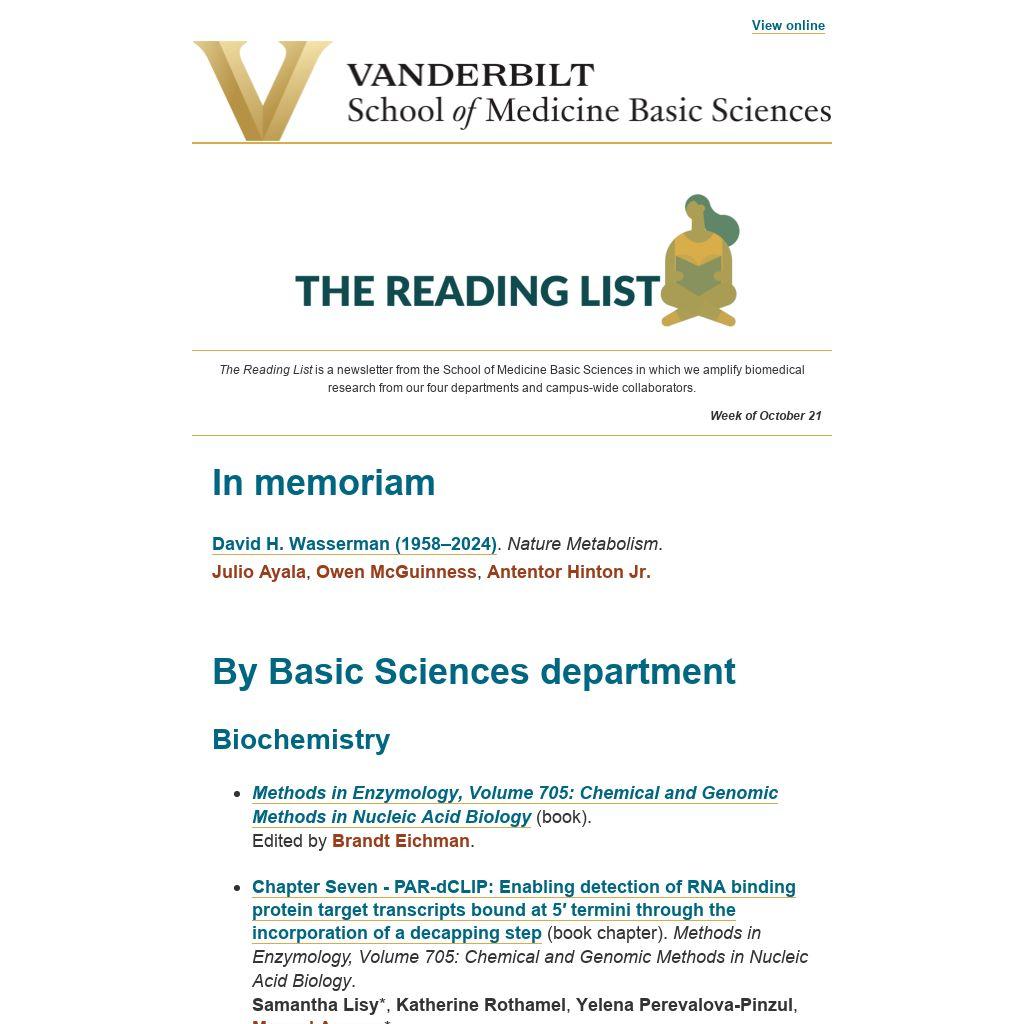 The Reading List is a newsletter from the School of Medicine Basic Sciences in which we amplify biomedical research from our four departments and campus-wide collaborators.