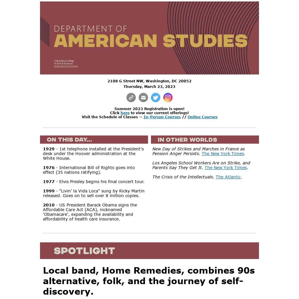 Like what you see? Have spotlights, kudos, events, or opportunities that you would like to share? We want to hear from you! Navigate to our feedback form using the link below, or more simply, forward your tip to amst@gwu.edu.