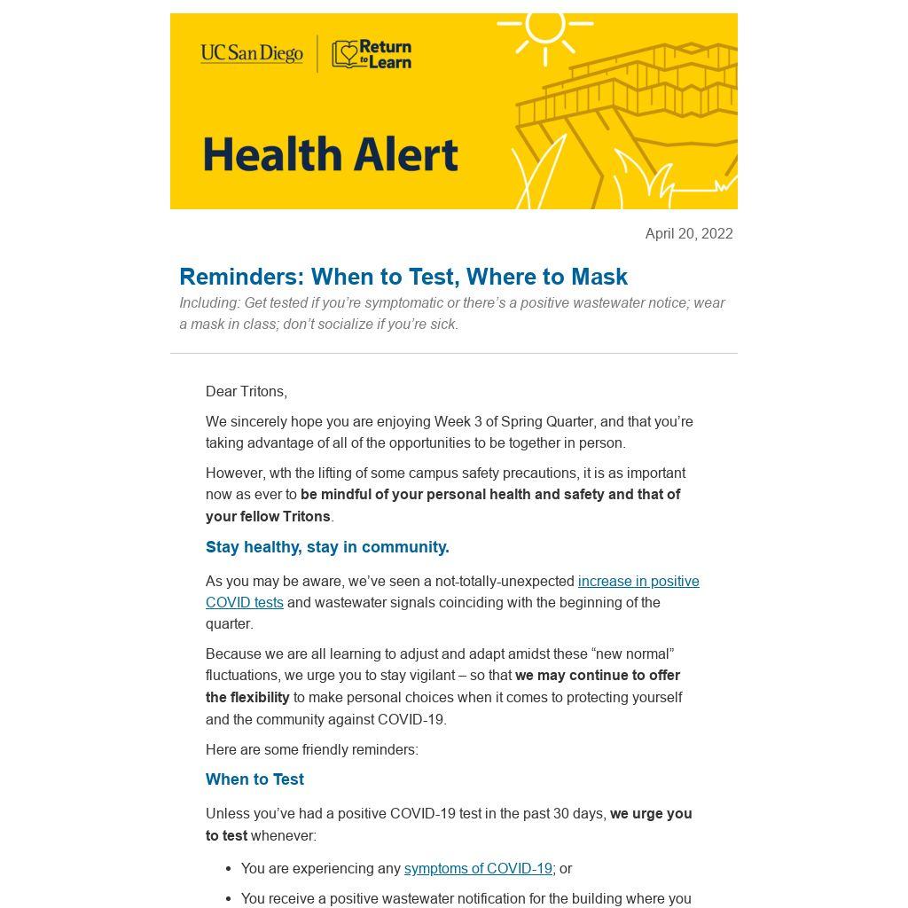 Thank you, Tritons, for continuing to demonstrate your commitment to the health and safety of our entire community.