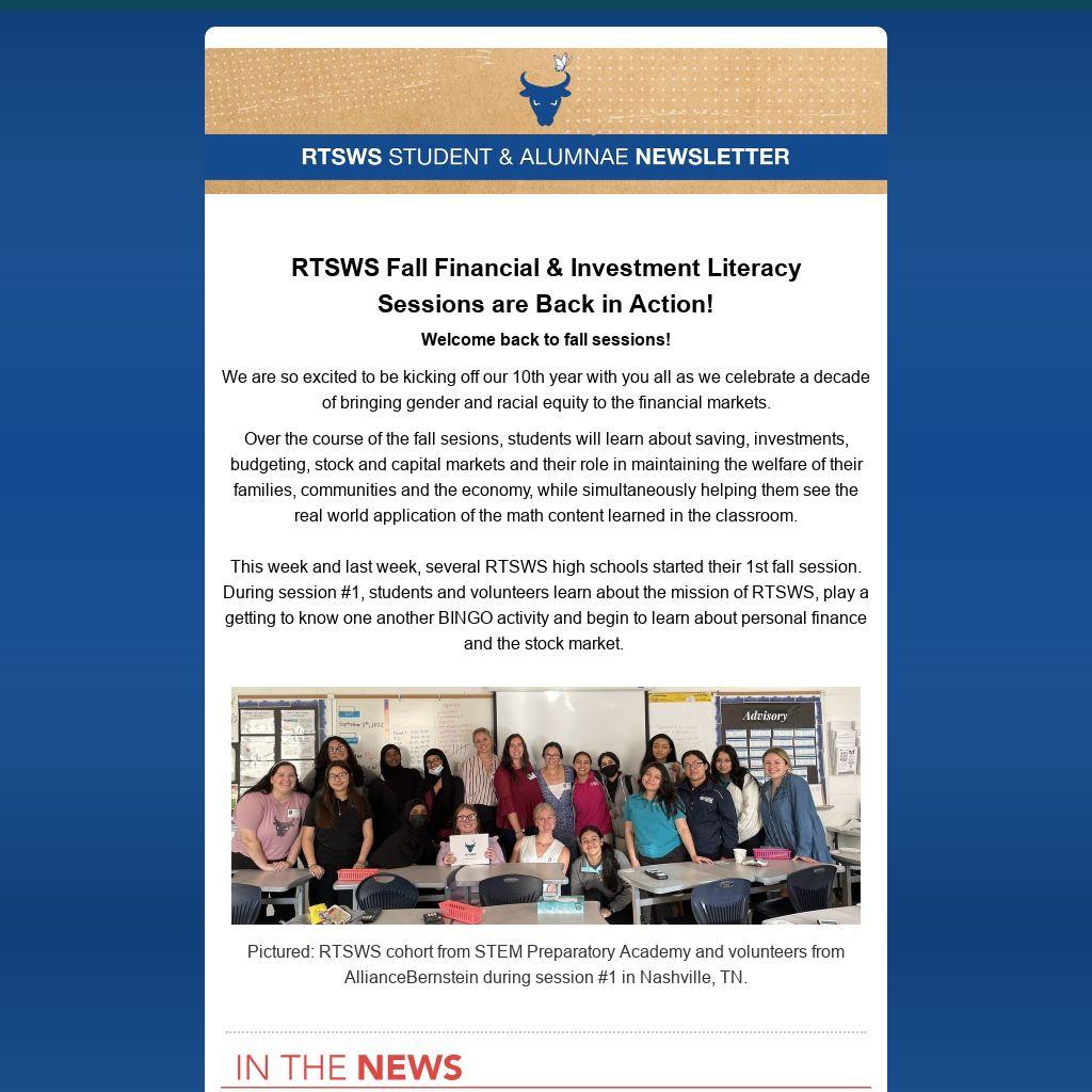 This week and last week, several RTSWS high schools started their 1st fall session. During session #1, students and volunteers learn about the mission of RTSWS, play a getting to know one another BINGO activity and begin to learn about personal finance and the stock market.