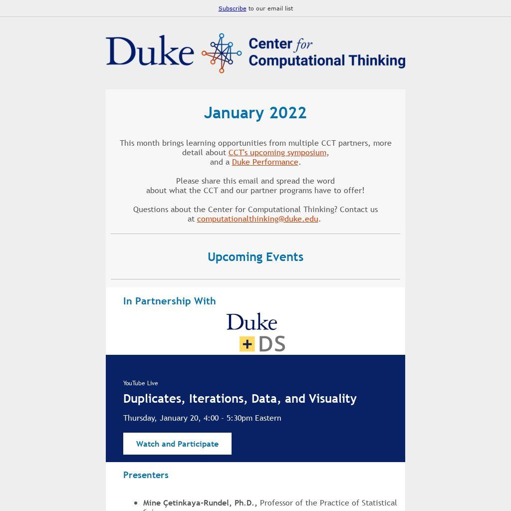 You're receiving this email because you participated in a Duke +DataScience learning experience or have expressed interest in the CCT.
