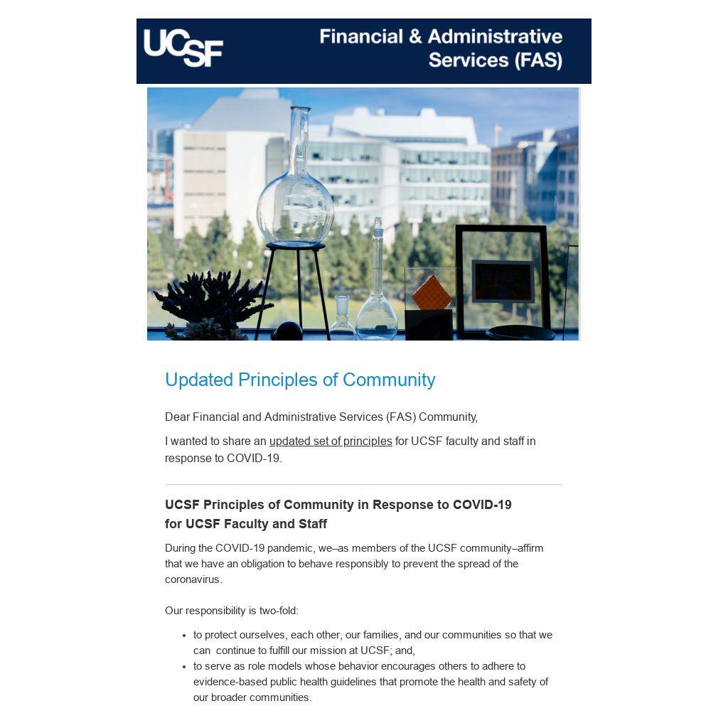 - to protect ourselves, each other, our families, and our communities so that we can continue to fulfill our mission at UCSF; and,