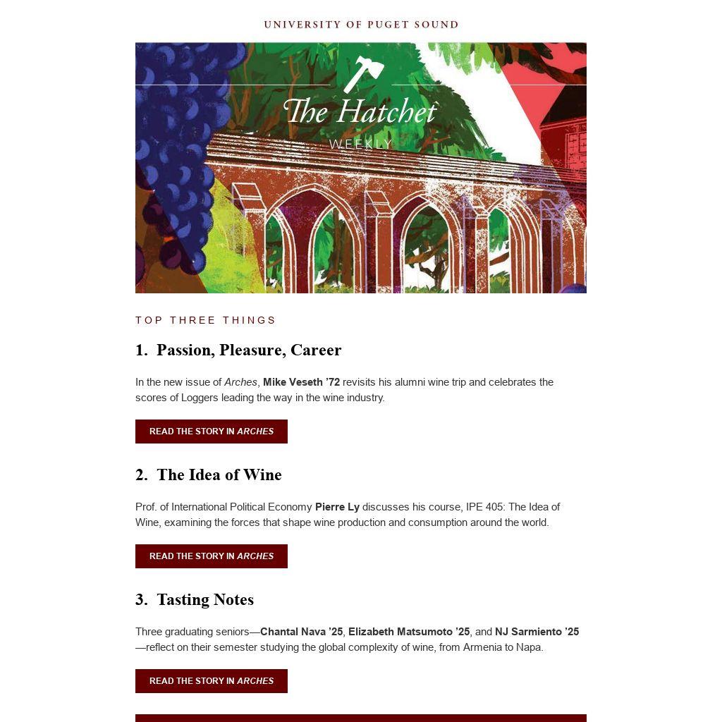 In the new issue of Arches, Mike Veseth ’72 revisits his alumni wine trip and celebrates the scores of Loggers leading the way in the wine industry.