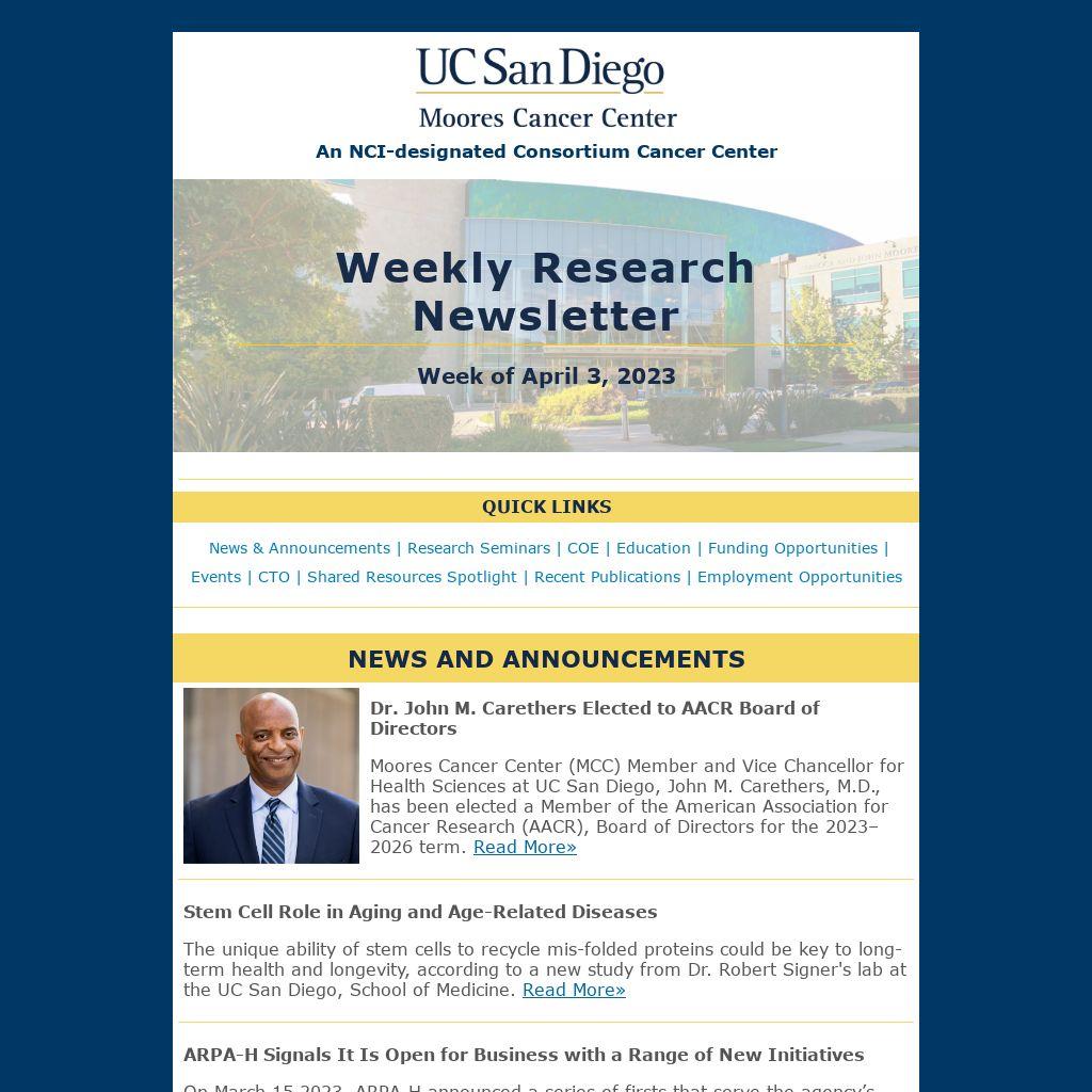 To submit any announcements, funding opportunities, events, or other important items to this newsletter, please make use of the newsletter submission form that is linked below. In order to submit to our newsletter submission form, you must be logged into Google with your UC San Diego email account.